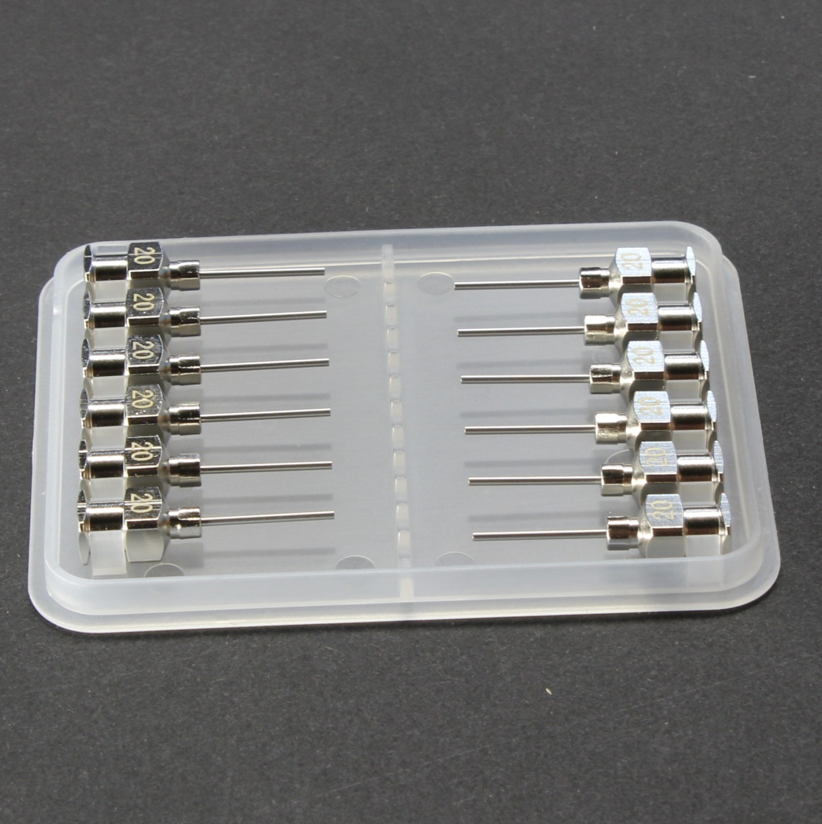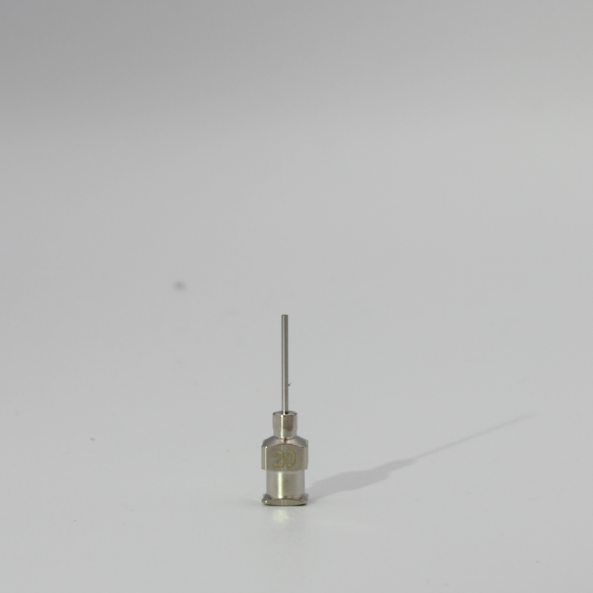 20G/13mm Fully Metal Precision Tips & Needles designed for maximum durability and performance offering exceptional strength, high-temperature resistance, grounding capability, and superior chemical compatibility with aggressive solvents with target deposit size of ~0.055–0.075″ (1.4–1.9 mm) (Box of 12)