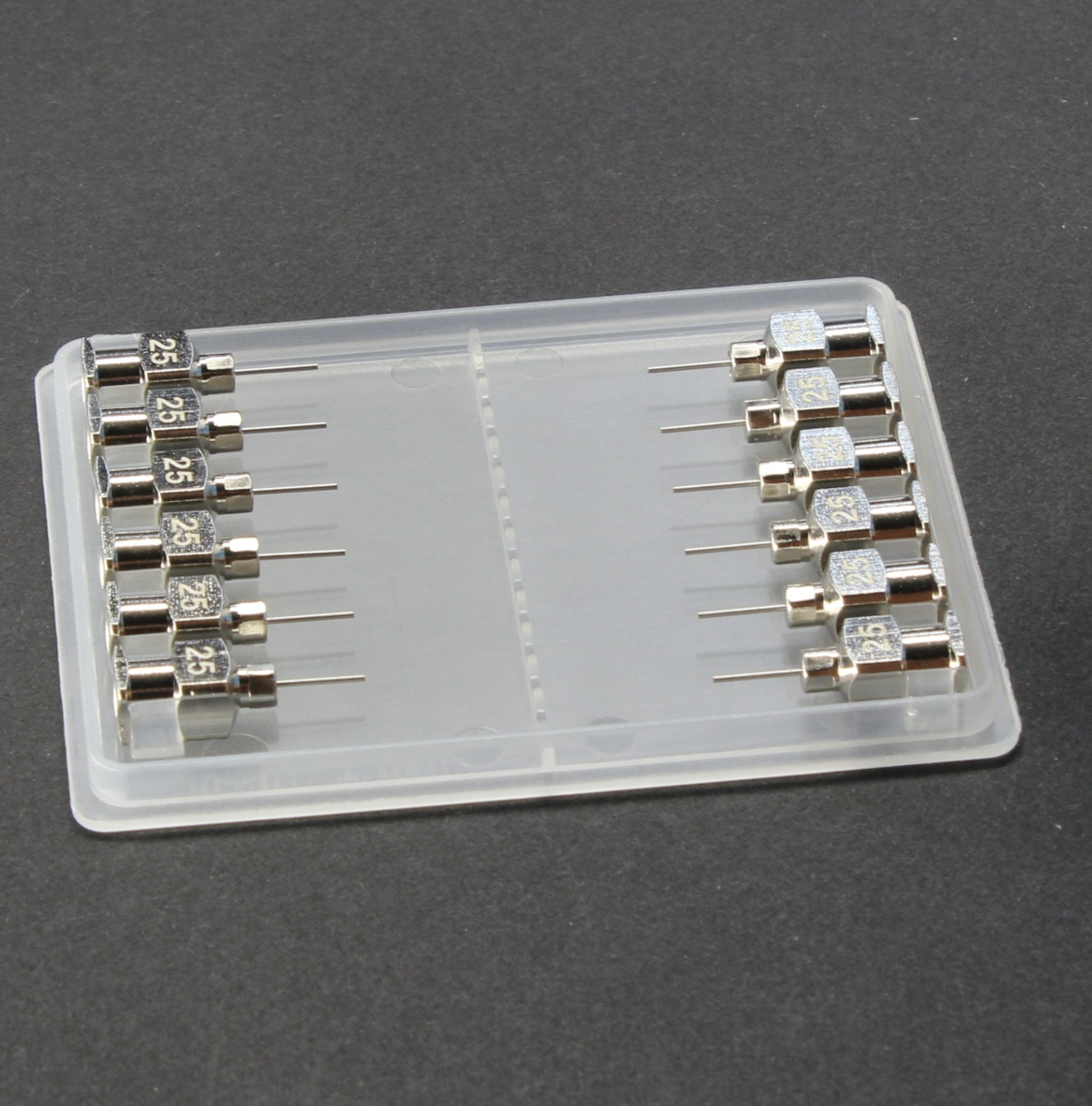 25G/13mm Fully Metal Precision Tips & Needles designed for maximum durability and performance offering exceptional strength, high-temperature resistance, grounding capability, and superior chemical compatibility with aggressive solvents with target deposit size of ~0.030–0.050″ (0.8–1.3 mm) (Box of 12)